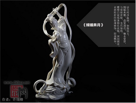 德化白瓷的特点是胎釉中的Feo含量特别高,烧成时采用中性气氛,所以德化白瓷就比唐宋北方白瓷和景德镇同期生产的白瓷釉色更纯净。从外观上看,明代德化白瓷色泽光润明亮,乳白如凝脂,在光照之下,釉中隐现粉红或乳白。因此有“猪油白”、“象牙白”、“少女白”之称。流传欧洲后,外国人又称之为“鹅绒白”。直到现在,法国人还以“中国白”直呼德化窑白瓷。(来源: 中国艺术网 )