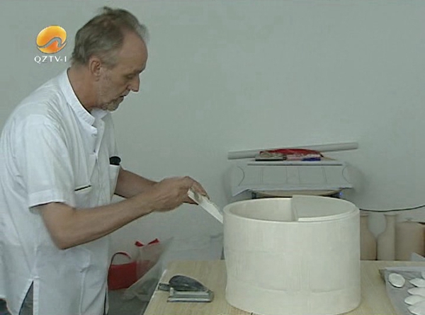 法国勒阿弗尔高等美术学院教授 让·夏尔·毕儒:因为德化瓷器是比较难用的,虽然很白很透明,但是很容易裂很容易出问题,现在在想怎么把这个缺点也是优点,用出来,再做一个空的佛。