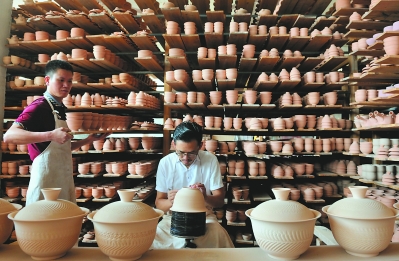 大元陶瓷运用传统跳刀工艺与台湾釉水结合研发陶瓷新品。