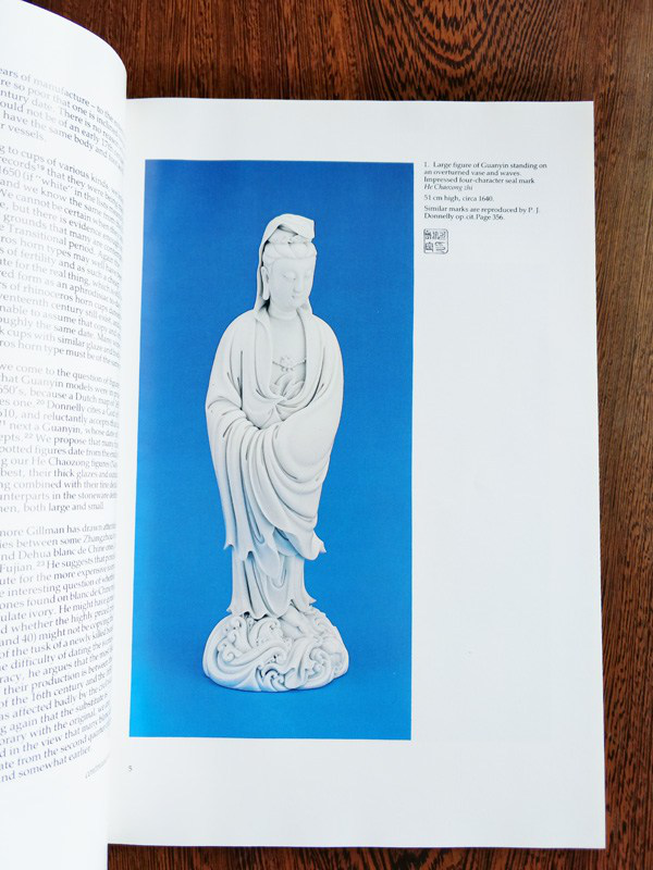该公司在成立60、70、80、90周年时,都是以举办一场德化白瓷专题展览来庆祝的;1985年、1994年、2006年、2014年精心编著出版一本《中国白—德化瓷》研究书籍,形成一道独特的文化风景线。这尊何朝宗的渡海观音即是出自1985年的这场专题展览。