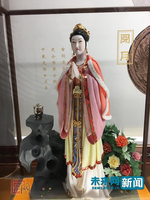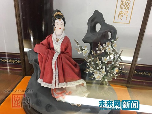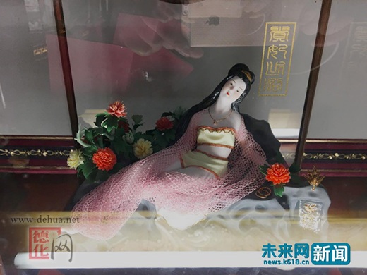 图中瓷美人身披粉色纱衣,实则也是坚硬的陶瓷,效果却几乎可以以假乱真了。未来网记者 程婷 摄