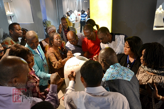 研修班学员们在白色素坯上签名留念(吴有森 摄)