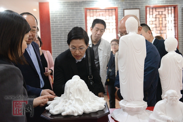 国外专家考察团被精美的德化白瓷吸引。(李宏图 摄)
