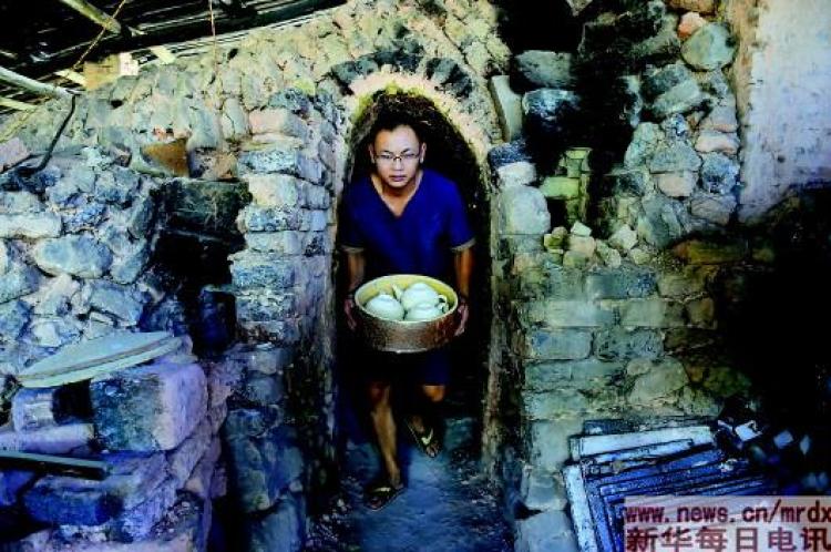 ▲福建省德化县洞上陶艺村,陶瓷工匠从有着400多年历史的月记窑中搬出一批陶瓷茶壶。(新华社记者宋为伟 摄)