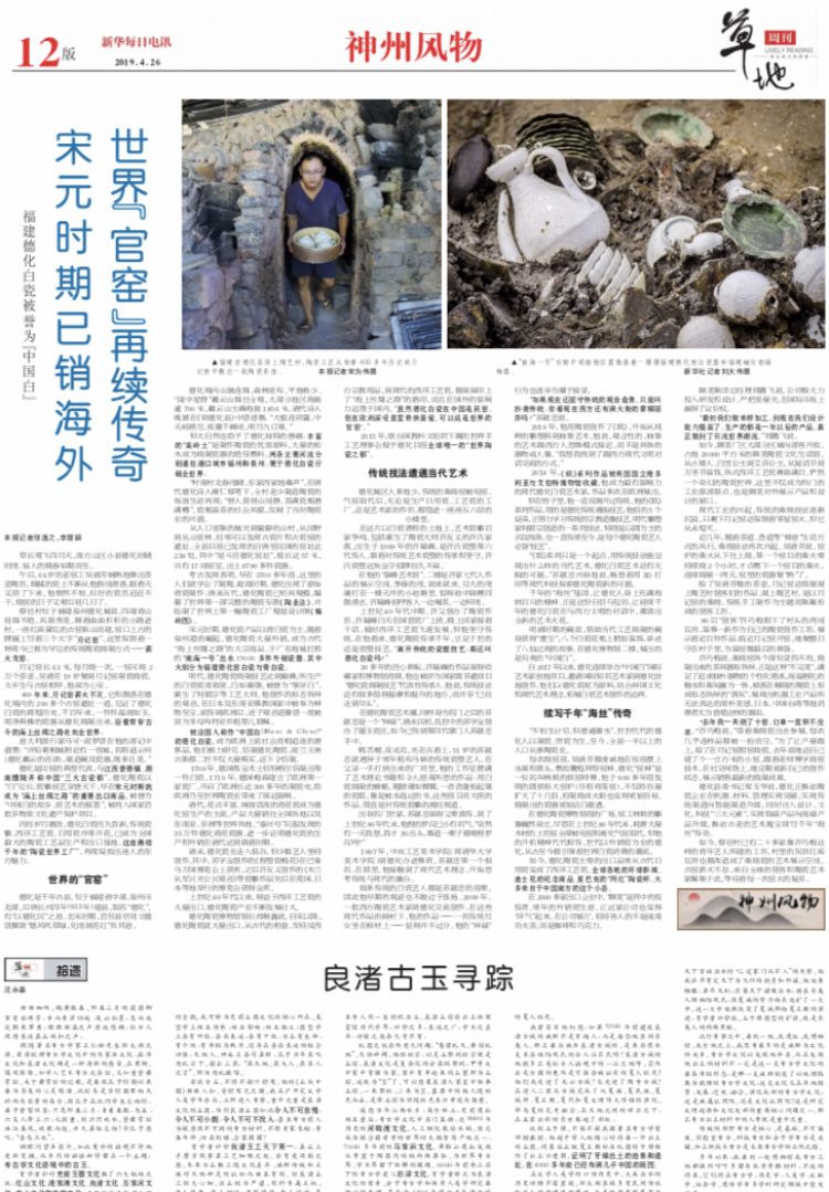 转载自2019年4月26日《新华每日电讯》,原标题为《福建德化白瓷被誉为“中国白” 宋元时期已销海外 世界“官窑”再续传奇》。