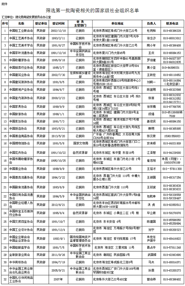 附件:筛选第一批陶瓷相关的国家级社会团体名单