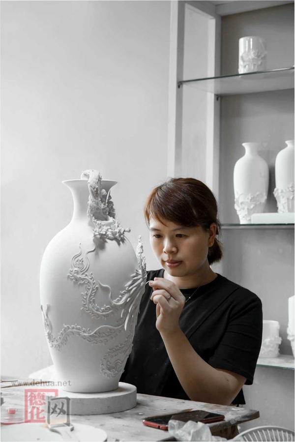 林丽品,女,德化,德化县林丽品陶瓷艺术研究所,高级工艺美术师,高级技师。