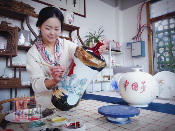 林灵月,女,德化,德化县韵瓷轩陶瓷艺术有限公司,国家高级工艺美术师,国家高级/一级技师。