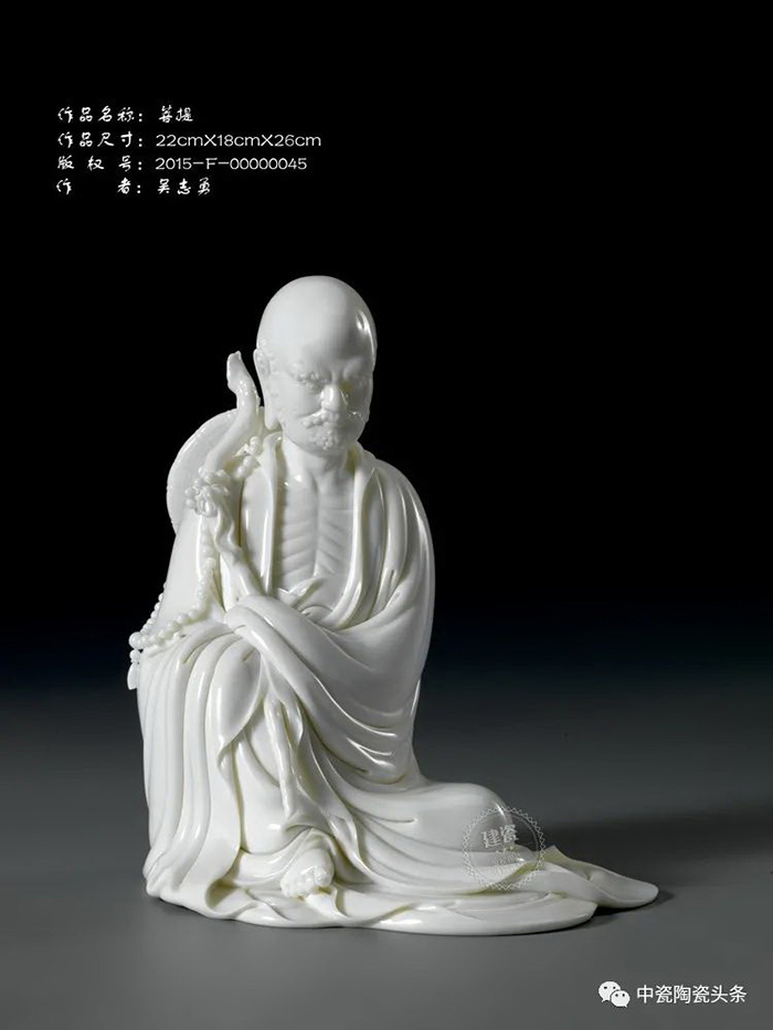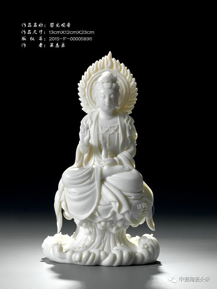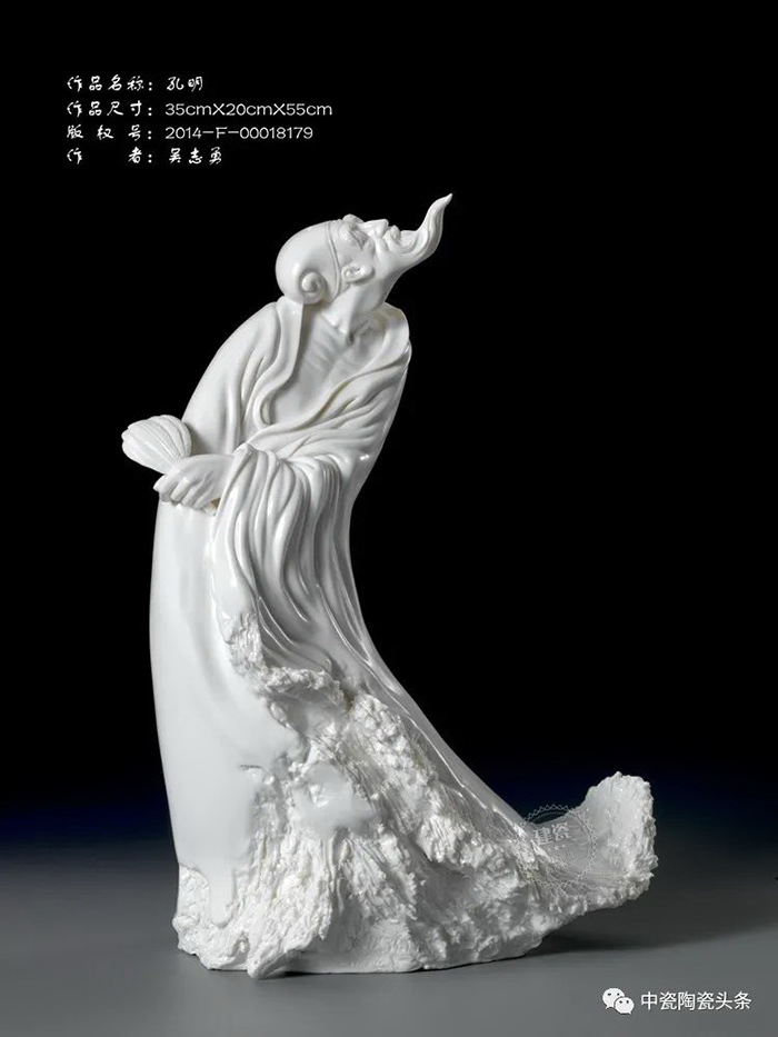 福建省工艺美术大师吴志勇作为德化传统瓷雕技艺的传承人,在从艺的二十六年时间里,以古为师,孜孜不倦探索传统瓷雕创作技法,并且锐意创新,注重材料自身的属性和多样化的表现方式,努力构筑富有自身特色的作品语言。作品先后50多次在国家级、省级评比中获得金奖、银奖与铜奖,数件作品被国家级,省级博物馆收藏。
