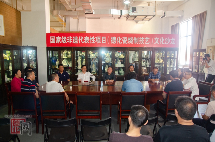 当天还举行了国家级代表性项目(德化瓷烧技艺)文化沙龙,就现代艺术瓷收藏现状及远景展望及德化瓷烧制技艺非遗传承脉络进行座谈交流。