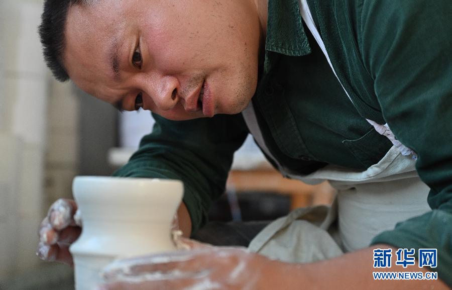 10月20日,徐金宝拉坯制作白瓷茶具。