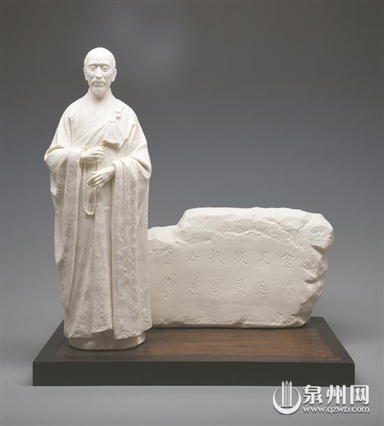“读史使人明智”。或许是长时间的创作,对“名僧”们生平历史的了解,庄少卿觉得自己性情越来越收敛,和作品融为一体。比如,为了雕好“弘一法师”,他和妻子到处收集材料,仔细研读弘一法师的生平事迹,观察研究弘一法师的图像,参考观摩各种材质的弘一法师造像,还多次前往泉州开元寺参观弘一法师纪念馆,沉下心来不断思索有关题材。从构思造型到打出泥稿,他们用了将近一年的时间,其间历经数十次修改。