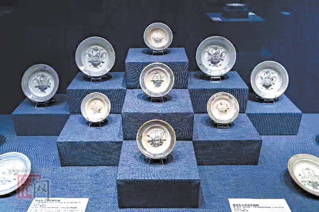 此次展览不仅展出了“泰兴”号沉船出水瓷器,在展览的最后一个单元也再现了德化窑这一著名的外销窑口千年发展史。德化是中国三大古瓷都之一,陶瓷文化源远流长、博大精深。目前已发现宋、元、明、清各代窑址180多处。宋元时期主要烧制青瓷、青白瓷、白瓷,装饰有划花、印花等,划花多见篦划纹,印花是元代普遍使用的装饰方法,大量运用于盒、壶、罐、瓶、军持等器物上;明代成功创烧乳白釉器而闻名于世,有雕塑人物与生活器皿两大类;清代则以青花瓷为大宗,进入全盛时期。