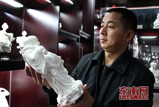 对于从事20多年教学创作的他来说,更加明白陶瓷是一门很深的科学。从瓷土到瓷器的过程漫长而艰辛,之间也存在着许多不可预料的事情。“关于创新,目前随着好瓷土的逐渐减少,材料上已经达到了极致。作为一名陶瓷教师,我们传授给学生的更多的是一种理念,引导他们从原料合成、题材、造型上创新,结合现代人的审美,制作出有时代特点的艺术品,并使其可以传播到世界各地,不仅传播陶瓷艺术品,也传播德化陶瓷制作的独特工艺。”对于创新的理解,周金田强调,在技术上的创新应该以严谨为前提,严格把关好每个环节,精雕细琢,从而才能更好地创新,这也是创新的基础。