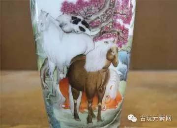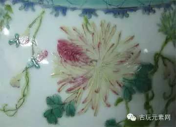 彩和工的差异结合起来考察效果最好。现在很多绘瓷彩料单纯就料色而言已仿得相当到位,譬如矾红、胭脂紫等等,除非造假者为节约成本而大量使用浮艳的现代化学颜料,但若将区分度不大的彩料颜色反映在极需功力的画工上,很多仿品便立刻原形毕露、高下立判了。