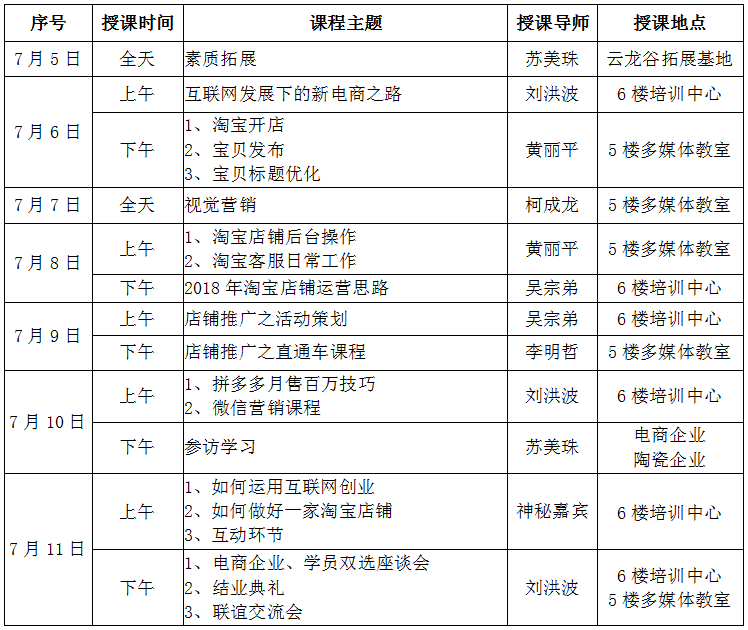 三、培训地点:德化电子商务创业园1号楼6楼培训中心(城东电商街32号/全友家居正对面100米)
