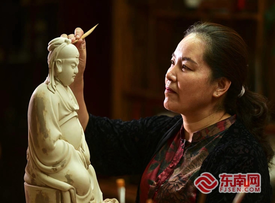 山东女子朱芳芳扎根德化三十年来,她始终不改初心,热爱德化陶瓷,经过不懈的探索、钻研、创作,她取得了国家一级技师、高级工艺美术师职业资格,获评福建省工艺美术大师、福建省陶瓷艺术大师、闽派雕刻艺术大师、泉州市工艺美术大师。